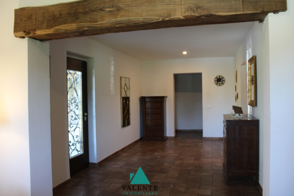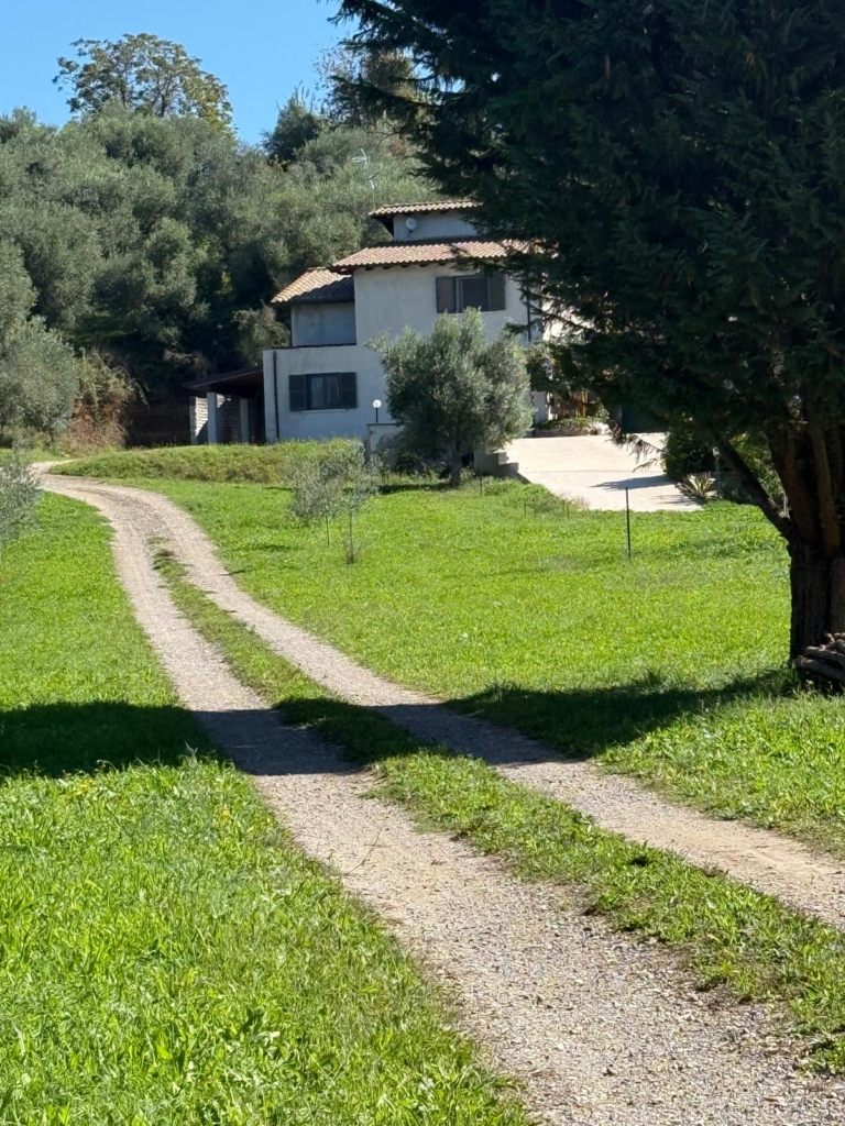 Valente Immobiliare propone la vendita di una splendida proprietà situata in una delle zone più ricercate del territorio, con parco privato di 3469 mq circa che circonda la villa indipendente su due livelli fuori terra di circa 269 mq interni. L’accesso alla proprietà avviene attraverso un elegante cancello carrabile che si apre su un viale che attraversa il parco, in parte pianeggiante e in parte alberato, ideale per garantire privacy e tranquillità, regalando sin da subito un’atmosfera esclusiva. Al piano terra ci accoglie una comoda e spaziosa pergola, spazio ideale per mangiare all’esterno in un contesto riservato. Attraversando un elegante portone blindato in legno e ferro battuto si accede all’interno dell’abitazione composta da un ampio ingresso, salone doppio con camino termico, utile durante l’inverno e che crea un’atmosfera accogliente. La zona giorno si completa con una grande cucina a vista ma separata, ideale per chi ama vivere la casa in modo conviviale, sempre al piano terra troviamo un’ampia camera matrimoniale, bagno con vasca e zona lavanderia. Salendo una comoda scala, caratterizzata da alcuni dettagli di mattoni in tufo lasciati a vista, troviamo la zona notte composta da tre ampie camere matrimoniali, di cui una con cabina armadio e grande bagno con doccia incassata. Tutta la zona notte è caratterizzata da travi in legno a vista, che rendono gli ambienti caldi, accoglienti ed eleganti, ed è servita da un balcone e un terrazzo abitabile, entrambi però da ultimare nella pavimentazione e ringhiere. Le condizioni interne sono ottime, la casa è pronta per essere abitata e dispone di infissi in legno con doppio vetro, zanzariere, termocamino, pozzo per l’acqua potabile con cisterna d’accumulo, bombolone gpl, fossa biologica. Questa proprietà rappresenta la perfetta unione tra confort, spazio e privacy, ideale per un’ampia famiglia e per chi desidera vivere in un contesto immerso nel verde senza rinunciare alla vicinanza all’autostrada per gli spostamenti quotidiani con Roma e alla vicinanza ai principali servizi.
